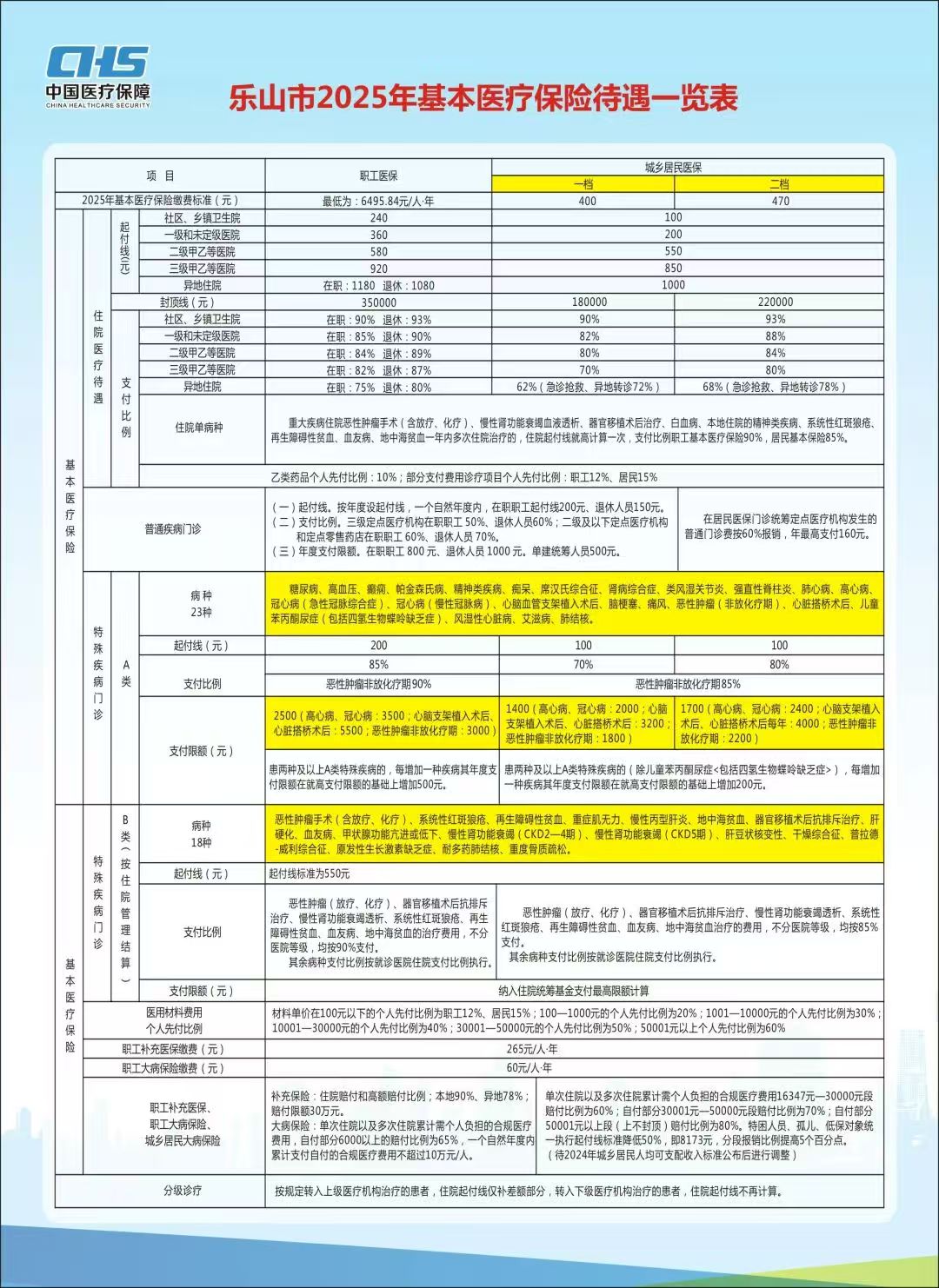 樂山市2025年基本醫(yī)療保險待遇一覽表