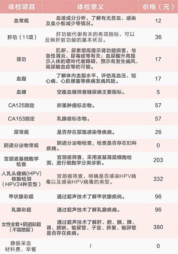 套餐一 未婚女性體檢套餐【原價715元,優(yōu)惠價536元,贈送體檢項目:血沉、靜脈采血】
