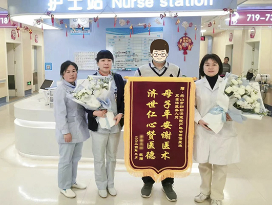 6點(diǎn)17分,產(chǎn)房里傳來嬰兒響亮的啼哭聲,吳女士平安產(chǎn)下一名男嬰。等待在產(chǎn)房外的吳女士愛人得知母子平安時(shí),喜極而泣。為感謝喻云倩及產(chǎn)科醫(yī)護(hù)人員的辛勞付出和精心呵護(hù),吳女士愛人送上寫有“母子平安謝醫(yī)術(shù) 濟(jì)世仁心贊醫(yī)德”的錦旗,表達(dá)一家人的感激之情。