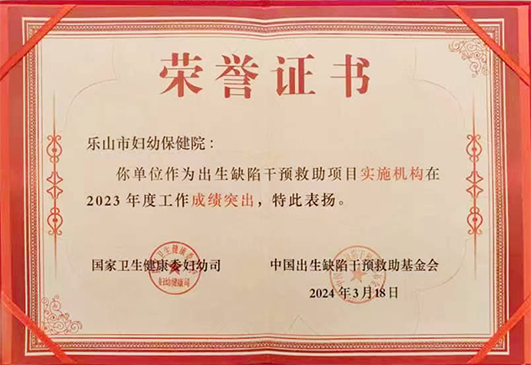 為持續(xù)推動(dòng)出生缺陷干預(yù)救助項(xiàng)目深入實(shí)施,減少出生缺陷的發(fā)生,提高出生人口素質(zhì),國(guó)家衛(wèi)生健康委婦幼司綜合考慮出生缺陷救助(檢測(cè))數(shù)量、工作質(zhì)量等因素,對(duì)全國(guó)出生缺陷干預(yù)救助項(xiàng)目省份及相關(guān)管理機(jī)構(gòu)、實(shí)施機(jī)構(gòu)予以表?yè)P(yáng),樂山市婦幼保健院作為全省唯一一家地市州的出生缺陷干預(yù)救助項(xiàng)目實(shí)施機(jī)構(gòu)(遺傳代謝?。┕鈽s上榜。