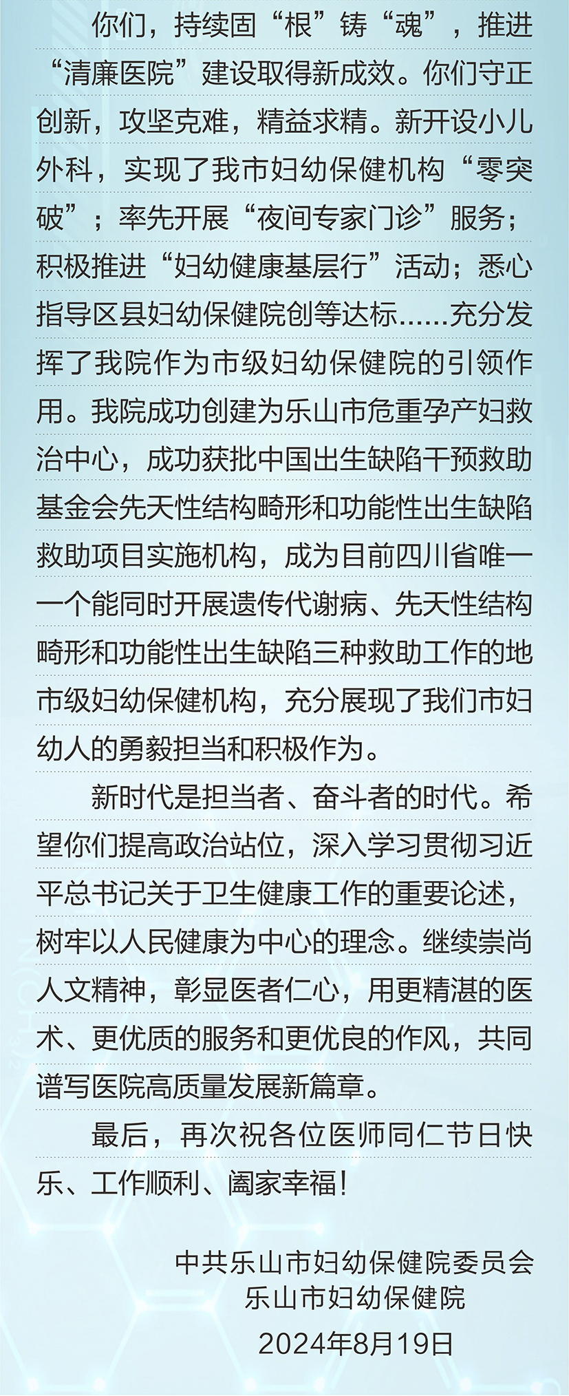發(fā)布時(shí)間:2024-08-19 09:26:23 來源:樂山市婦幼保健院 點(diǎn)擊:1638 【字體:大中小】