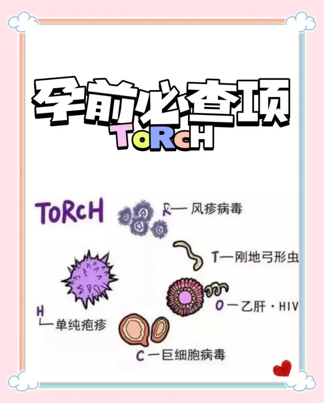 TORCH不是單一疾病,而是一組病原體的統(tǒng)稱,其縮寫代表了孕期最危險的微生物刺客: