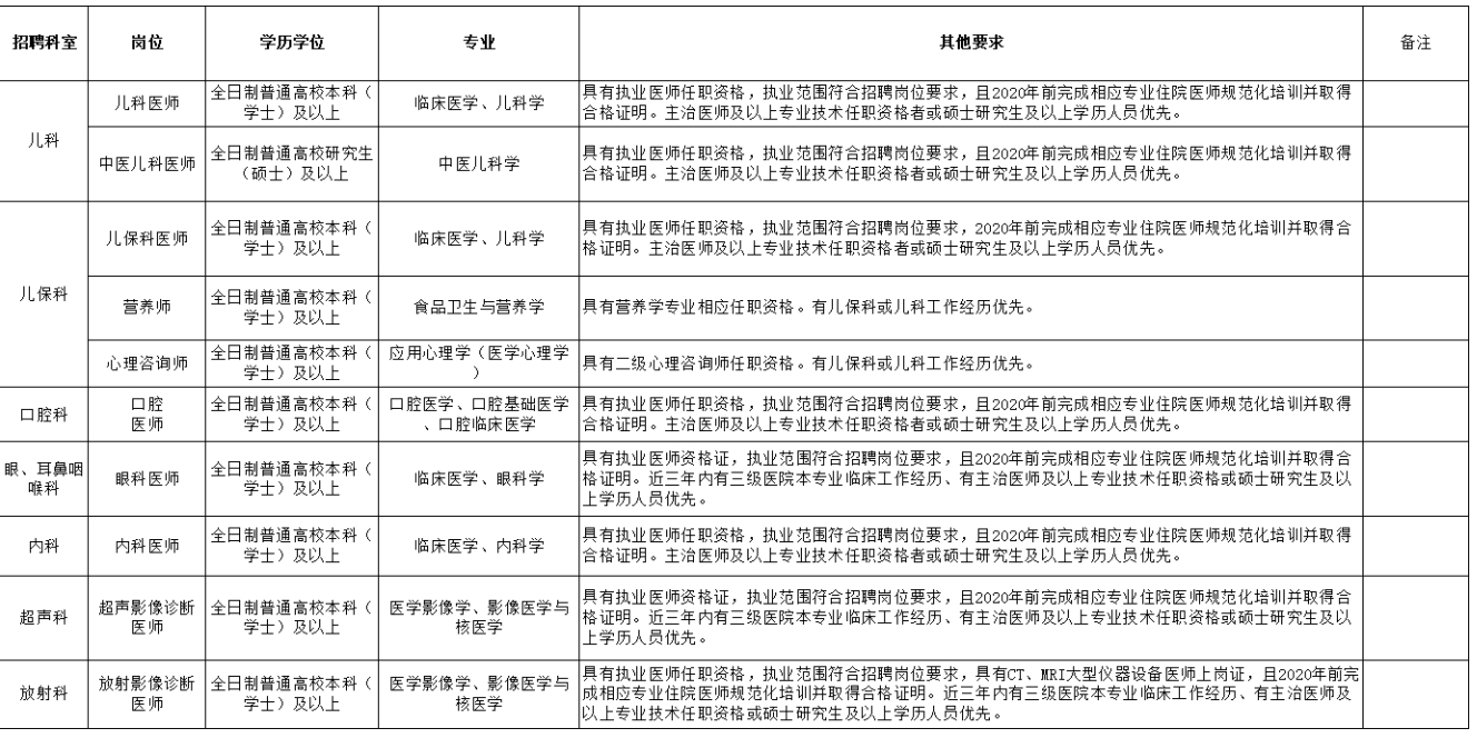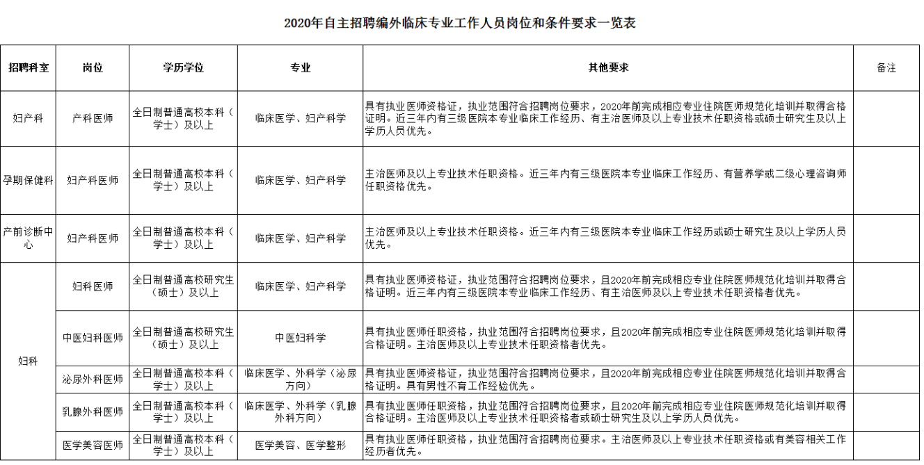 關(guān)于2020年下半年自主招聘編外臨床專業(yè)工作