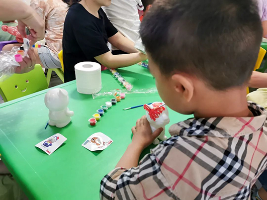 醫(yī)護(hù)人員與小朋友們圍成一圈,大手拉小手上演了多種歡樂(lè)的游戲,現(xiàn)場(chǎng)的小丑表演更是逗得孩子們合不攏嘴。精心準(zhǔn)備的手工制作活動(dòng),激發(fā)了孩子們的濃厚興趣,紛紛上手為玩偶涂上最美的顏色。