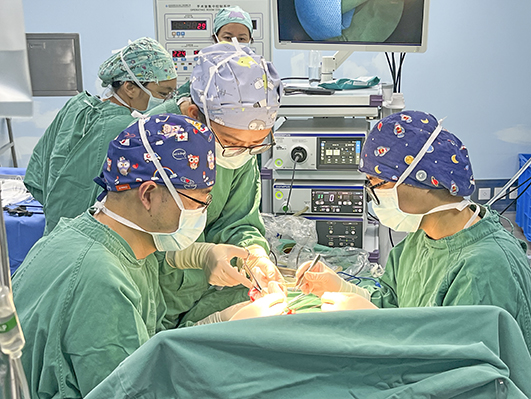 經(jīng)過(guò)詳細(xì)檢查,小楠被確診為先天性膽總管囊腫。據(jù)了解,先天性膽總管囊腫是小兒較常見(jiàn)的一種膽道畸形,如不及時(shí)治療將嚴(yán)重危害孩子健康甚至危及生命。因?yàn)樾¢韧羞^(guò)腹部開(kāi)放手術(shù)史,腹腔的粘連可能會(huì)給此次手術(shù)增加不小的難度,在院長(zhǎng)包平倩的帶領(lǐng)下,小兒外科團(tuán)隊(duì)做了充分的評(píng)估和討論,決定為患兒實(shí)施腹腔鏡下先天性膽總管囊腫切除膽道成形術(shù),經(jīng)過(guò)周全的術(shù)前準(zhǔn)備,最終小楠的手術(shù)非常順利地完成。