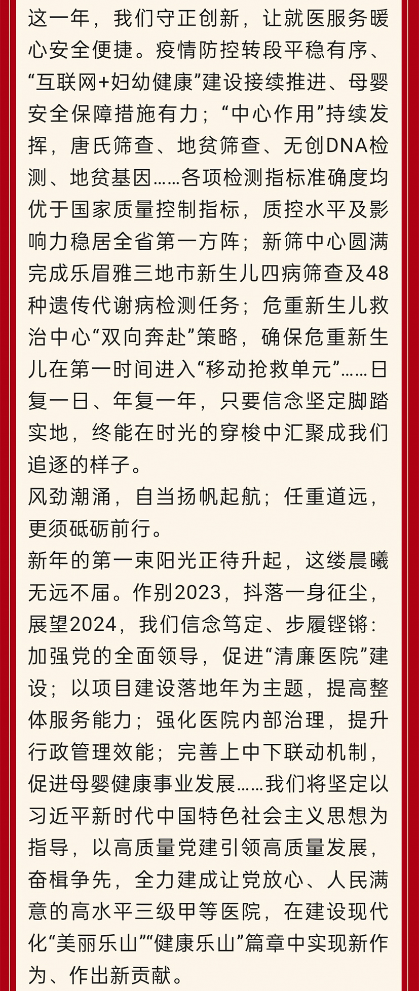 奮楫爭先 與光同行——樂山市婦幼保健院2024年新春賀詞